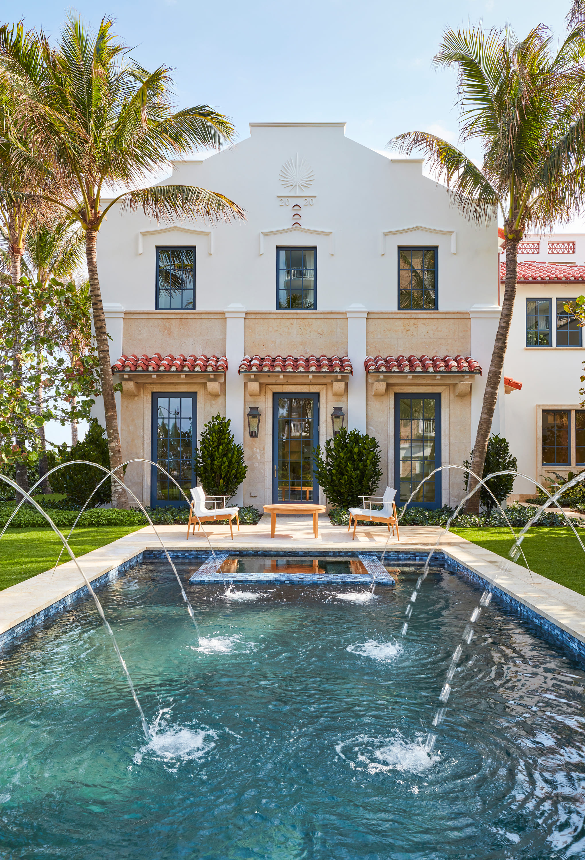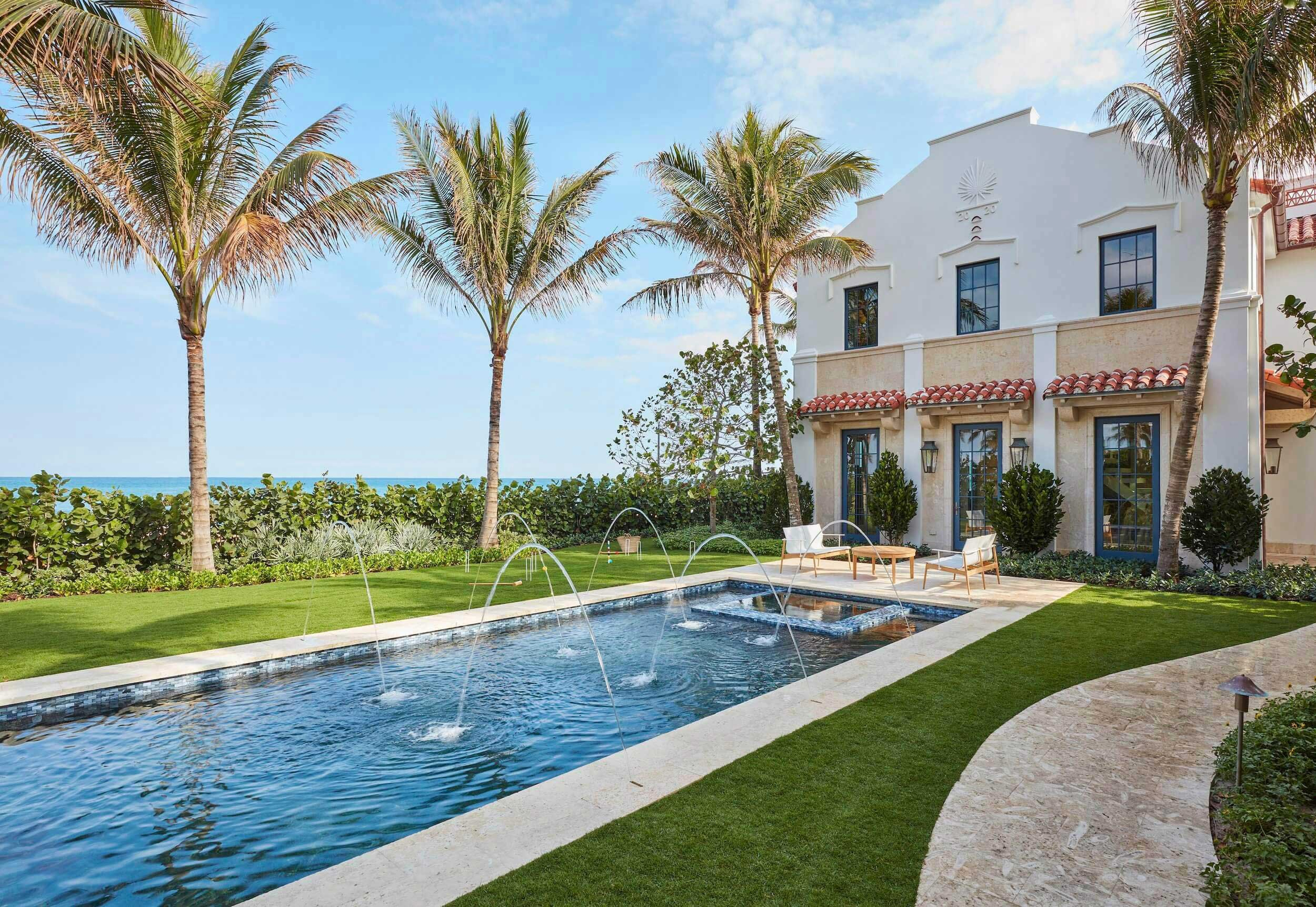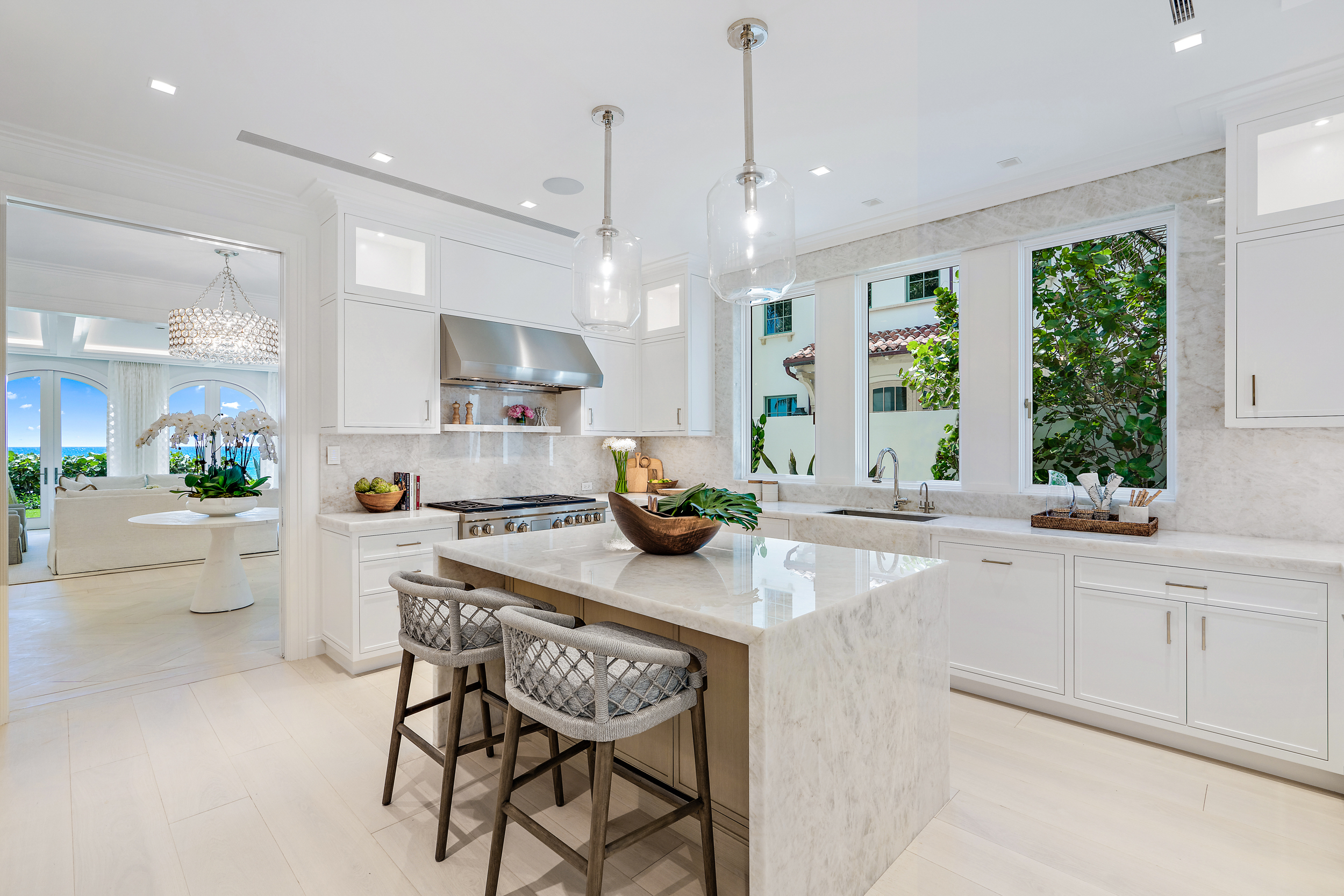Drawing from a transitional Mediterranean vernacular, the design balances classical influence with modern clarity. Each residence spans approximately 9,000 square feet, with three sides of fenestration and sweeping ocean views that offer privacy without isolation.