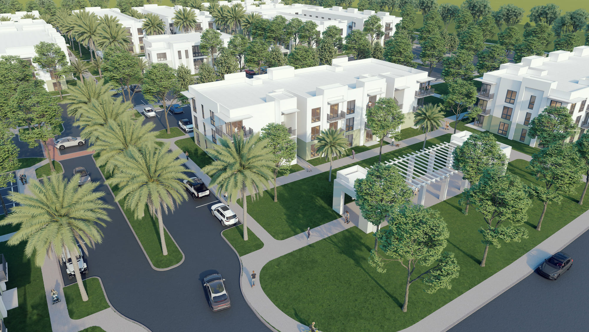 The concept reinterprets the largely forgotten yet time-tested model of the early twentieth-century garden community. Developed at the edge of major American cities, these neighborhoods were rooted in the simple belief that access to greenery is essential for quality of life. Westgate Village revives that principle with clarity and intent, where every residence faces a garden or leads directly to one.